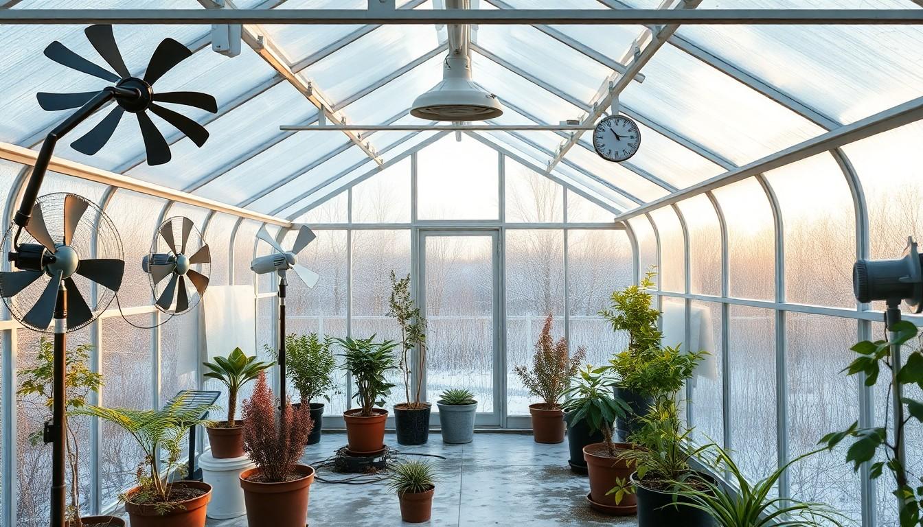 Cold spots occur from uneven heat distribution and poor air circulation. Place wireless temperature sensors at plant level to identify areas below 7°C. Install circulation fans at opposite corners to create continuous airflow patterns. Add thermal mass materials like water-filled containers near cold spots to stabilise temperatures. Position taller plants against north-facing walls to block cold drafts and create natural wind barriers.